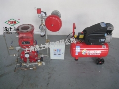 ZSFU预作用报警阀组是由雨淋阀和湿式报警阀上下串接而成,雨淋阀位于供水侧,湿式报警阀位于系统侧而成为预作用阀组。系统由预作用阀、水力警铃、压力开关、空压机、空气维护装置、信号蝶阀等组成,安装闭式洒水喷头,并以常用的探测系统作为报警和启动的装置。其动作原理:一旦发生火灾,安装在保护区感温感烟火灾探测器发出火灾报等信号。火灾报警控制器或消防控制中心,接到报警信号后发出指令打开雨淋阀上电磁阀,使雨淋阀开启,压力水流进系统侧管网,变成湿式喷水系统,同时水力警铃发出报苦,压力开关动作反馈给控制中心显示管路已充水,并启动消防泵。此时管道上安装闭式洒水喷头尚未释放,不会喷水。人尚可主动地经主管人员采取适当行动将火扑灭,避免喷头动作水渍造成的损失。如果火灾控制不住继续发展,致使闭式喷头玻璃球动作喷水,水泵自动启动。